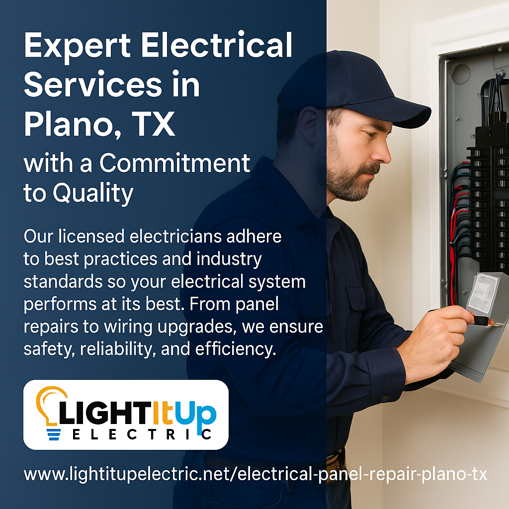 When it comes to your home’s electrical system, choosing a professional who follows best practices and industry standards is essential. At Light It Up Electric, our licensed electricians are dedicated to delivering safe, reliable, and long-lasting electrical solutions for homeowners in Plano, TX.