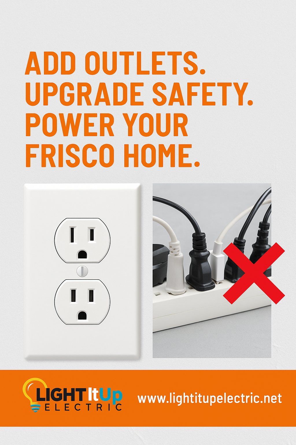 At Light It Up Electric, we provide professional outlet installation, repair, and replacement for homeowners in Frisco, TX. From adding extra outlets for your growing power needs to upgrading with modern features like USB charging ports and tamper-resistant receptacles, we ensure your home’s electrical system is safe, reliable, and up to code.