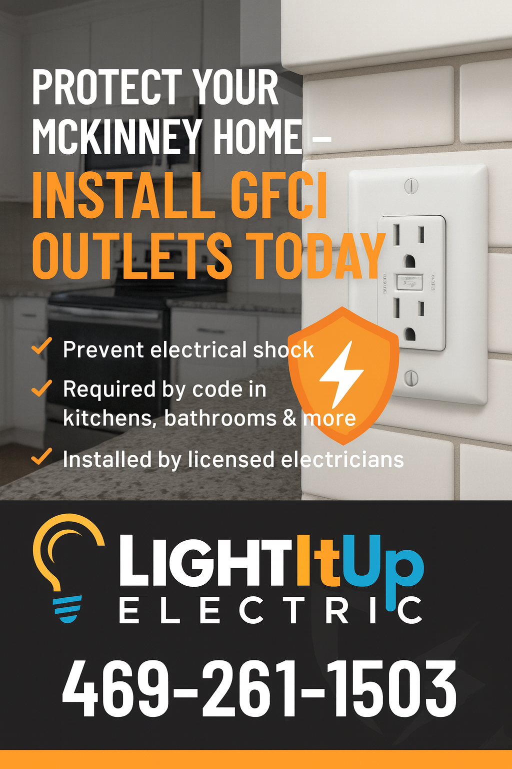 If you’re planning an electrical upgrade in McKinney, TX, trust the licensed experts at Light It Up Electric. We provide professional GFCI installation, ensuring your home meets safety standards and operates efficiently.