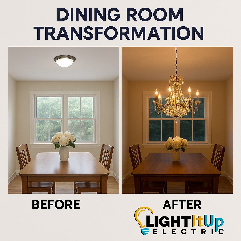 At Light It Up Electric , we help Plano homeowners design beautiful, functional lighting that transforms your dining experience. 💡 Dimmable LEDs | Elegant Fixtures | Professional Installation 📍 Proudly serving Plano, TX 👉 Visit lightitupelectric.net/electrician-plano-tx to upgrade your lighting today!