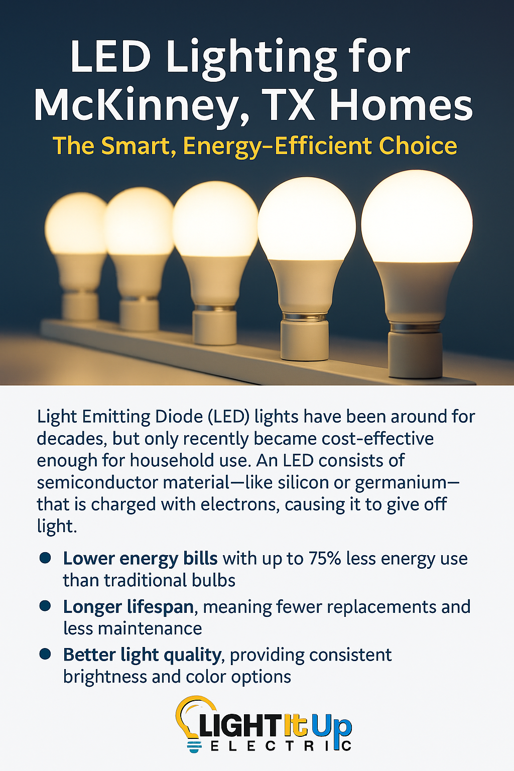Light Emitting Diode (LED) lights have been around for decades, but only recently have they become affordable and cost-effective enough for everyday household use. Today, LED lighting is one of the best upgrades McKinney homeowners can make to improve both energy efficiency and home comfort.