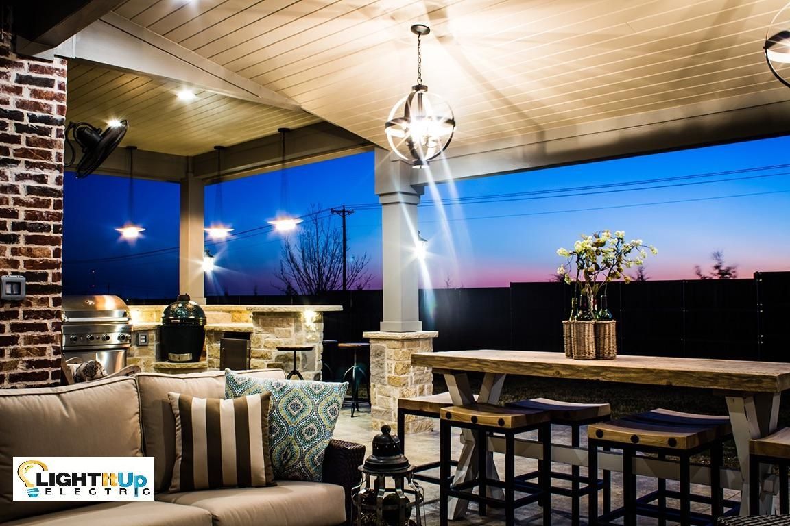 Outside, some families consider upgrading their patio electrical to include ambiance lighting. Or have the fixtures installed for an outdoor kitchen electrical system. If your outdoor patio has a permanent roof, consider installing pendant fixtures or a chandelier mounting.